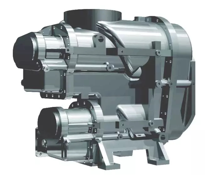 - 雙電機獨立驅(qū)動,每級壓縮比相比單級壓縮降低,轉(zhuǎn)子間泄漏回流大大降低,產(chǎn)氣量增加;